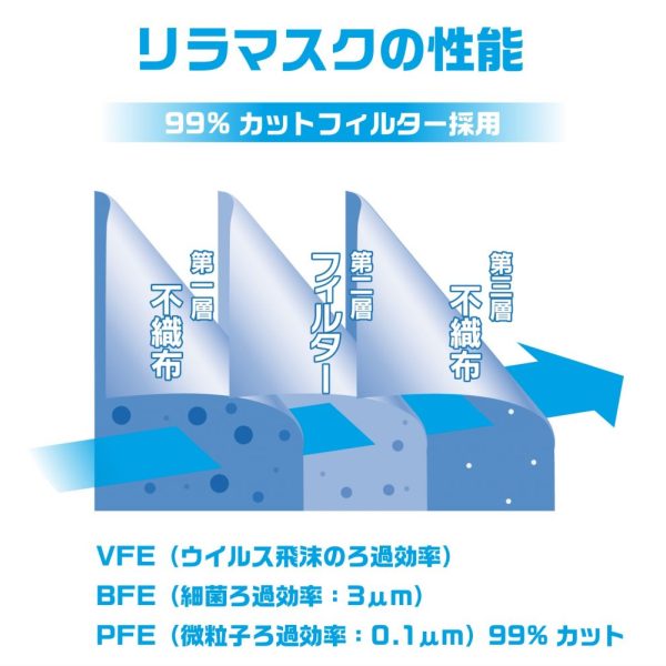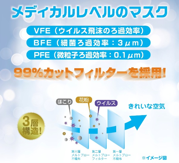 PFE(微粒子ろ過効率:0.1マイクロメートル)