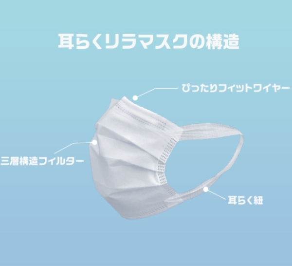 耳らく リラマスク 50枚 使い捨て 不織布 日本製 大人 ホワイト